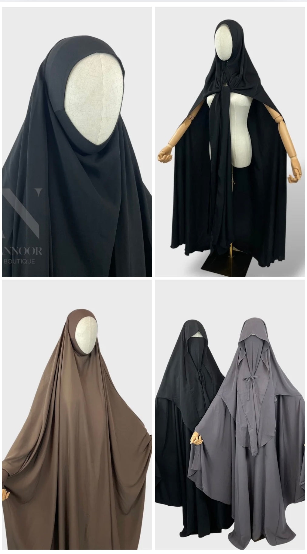Hier findest du eine sorgfältig ausgewählte Kollektion an Abayas, Accessoires, Khimars, Jilbabs, Niqabs/Sitars, Hijabs und mehr. Unsere Kleidungsstücke sind in verschiedenen Größen und Längen erhältlich und erfüllen die Anforderungen des islāmischen Hijābs, während sie Eleganz und Komfort vereinen.