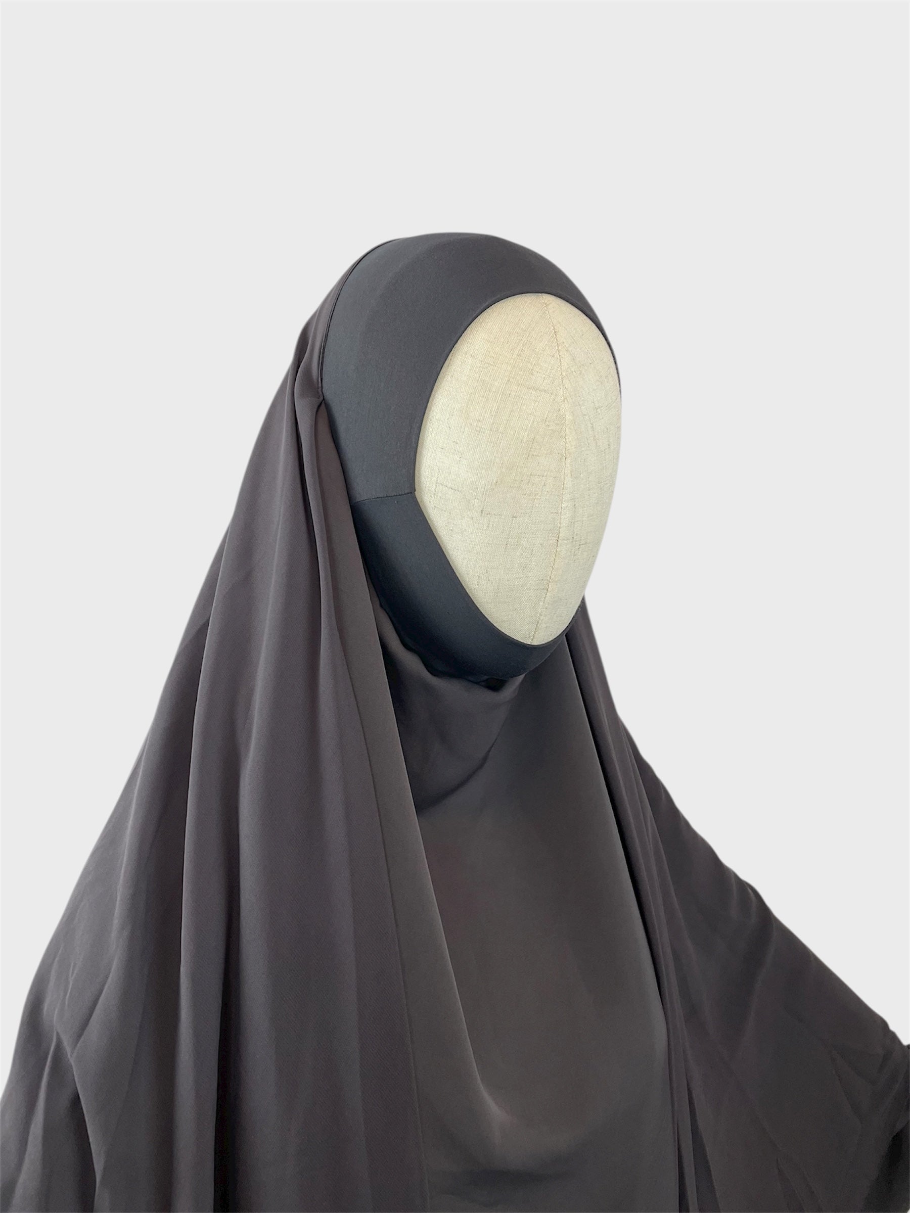 Der Lamia Jilbab vereint Komfort, Bedeckung und elegante Leichtigkeit in einem hochwertigen Einteiler. Der Einteiler aus Abaya-Seide fällt locker und fließend, das angennähte Chiffon-Tuch bleibt immer perfekt in Position, während Kalifornia-Stoff an Kinn und Stirn für sicheren Sitz sorgt.
