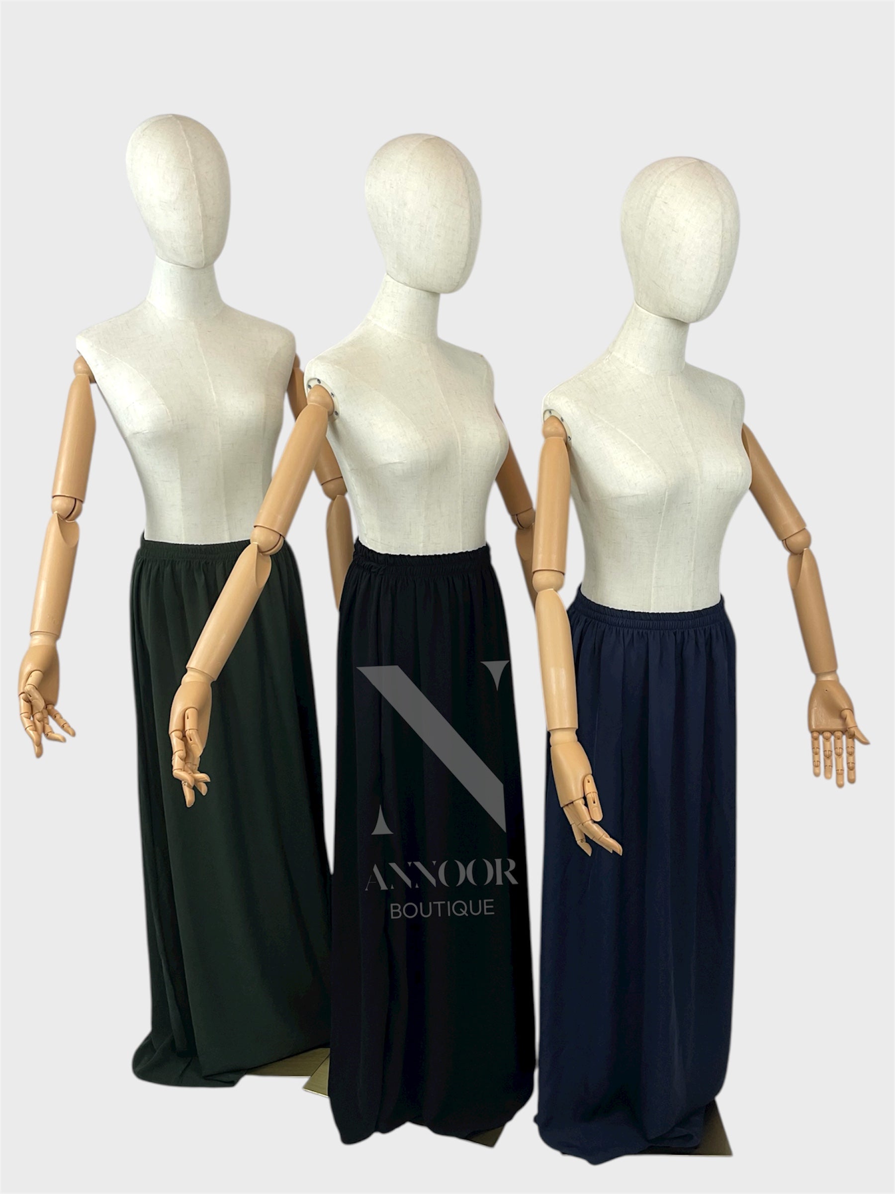 Gefertigt aus Woolpeach (100 % Polyester) und elastischem Baumwollejersey, vereint er fließenden Fall, Blickdichte und angenehme Dehnbarkeit. Perfekt für Alltag, Gebet oder besondere Anlässe.